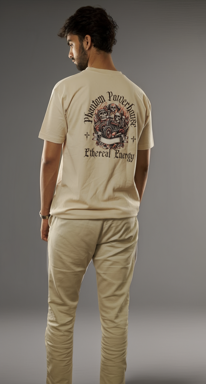 Featuring a bold yet understated skull graphic on a neutral beige backdrop, this t-shirt makes a strong statement without overpowering your look. The use of premium-quality cotton ensures that the fabric is breathable, soft, and durable, allowing you to enjoy long-lasting wear year-round. The oversized fit provides a relaxed silhouette, giving you freedom of movement while maintaining a stylish profile.